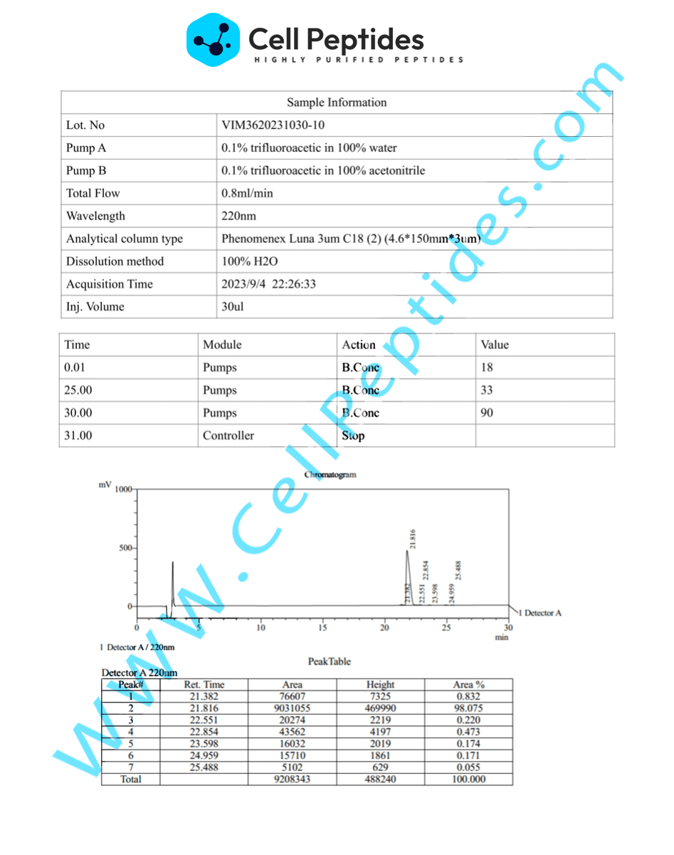 Adipotide is a complex, hard-to-synthesize experimental compound. Making it takes expertise — and technology. The quality of your research stands and falls with its structural integrity, so you need a research and scientific company that gets it right. That’s CellPeptides. We’re based in EUand our lab is WHO/GMP and ISO 9001:2015 certified.