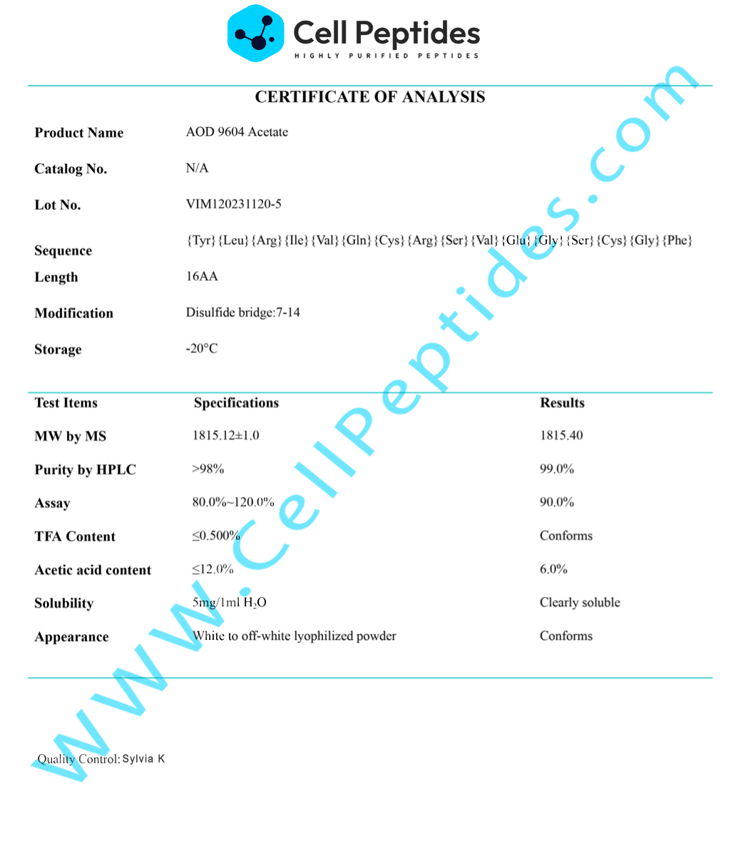 It’s not just that AOD9604 is hard to make (although it is), but also that it’s a very specific modified fragment. It takes no more than a missing disulfide bridge or amino acid to turn AOD9604 into a completely different compound. There’s zero margin for error — and the quality of your research starts right at the beginning. When you choose where you order AOD9604.