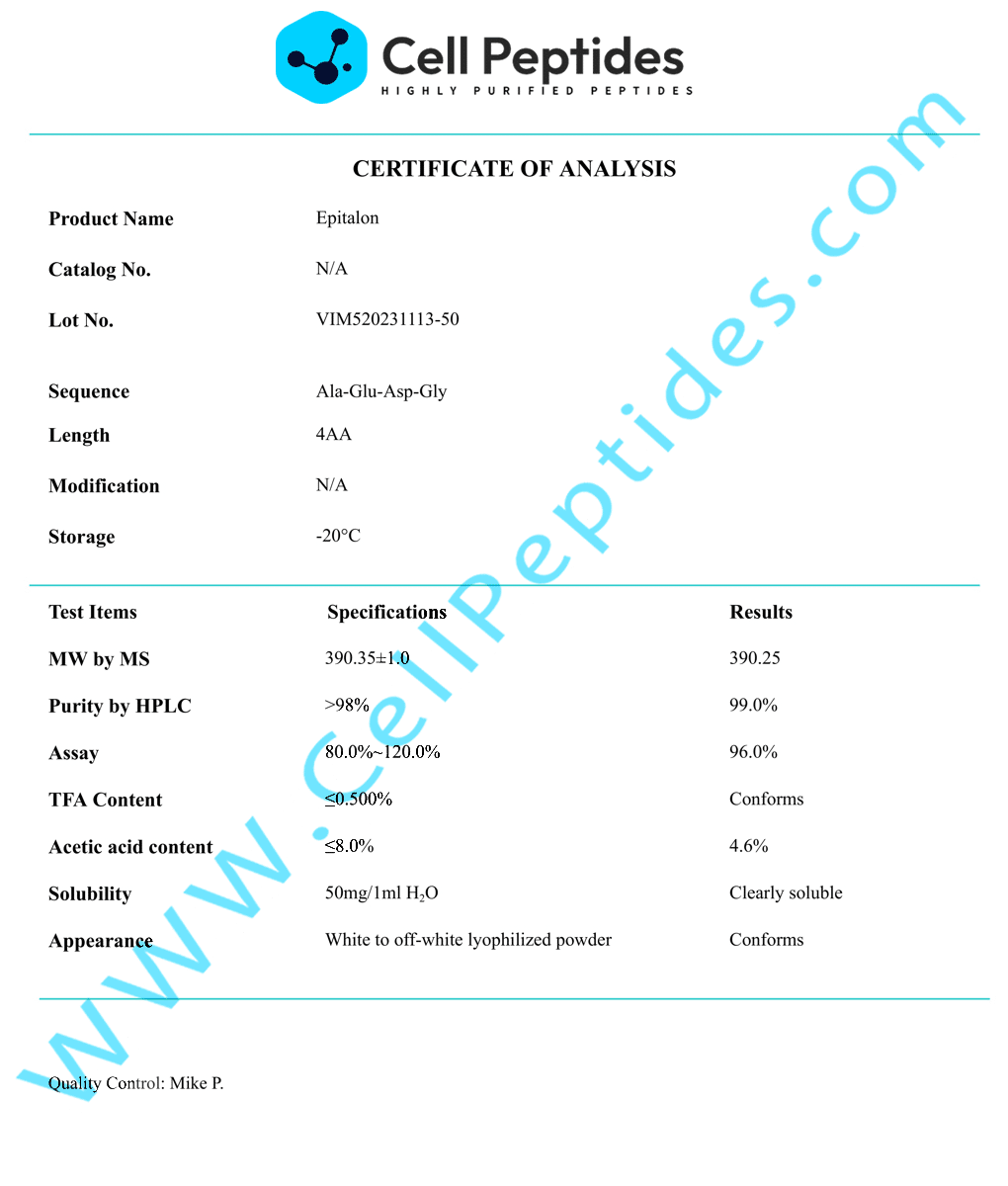 Knowing who you source your peptides from matters. The quality of your research depends on it. Interest in Epithalon is on the rise — but unfortunately, that also means researchers have to be extra careful about their providers. CellPeptides is a scientific research company. We manufacture our peptides in a WHO/GMP and ISO 9001:2015 certified laboratory in the European Union, and that means you get quality you can count on.